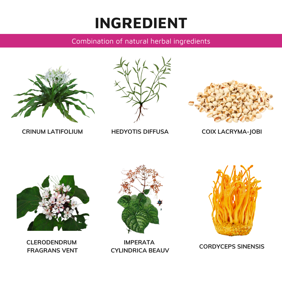 Formulated with Crinum Latifolium (Trinh nữ hoàng cung), Cordyceps Sinensis (Đông trùng hạ thảo), and other time-tested herbs, it helps: